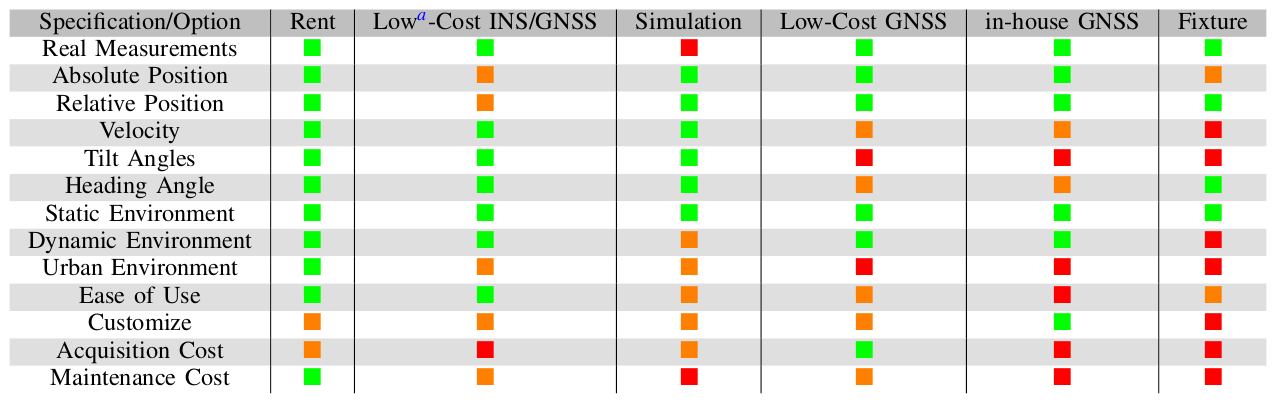 | III | Rent Reference System | medium or high-end commercial GNSS-aided INS | $1k - per test campaign |